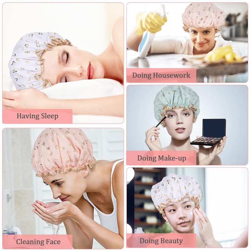 - High-quality fabric: soft and smooth lightweight satin fabric, the shower cap for women is double-layered, the inner layer is waterproof, with elastic band on the edge, elastic and non-toxic, this hat does not fade easily.