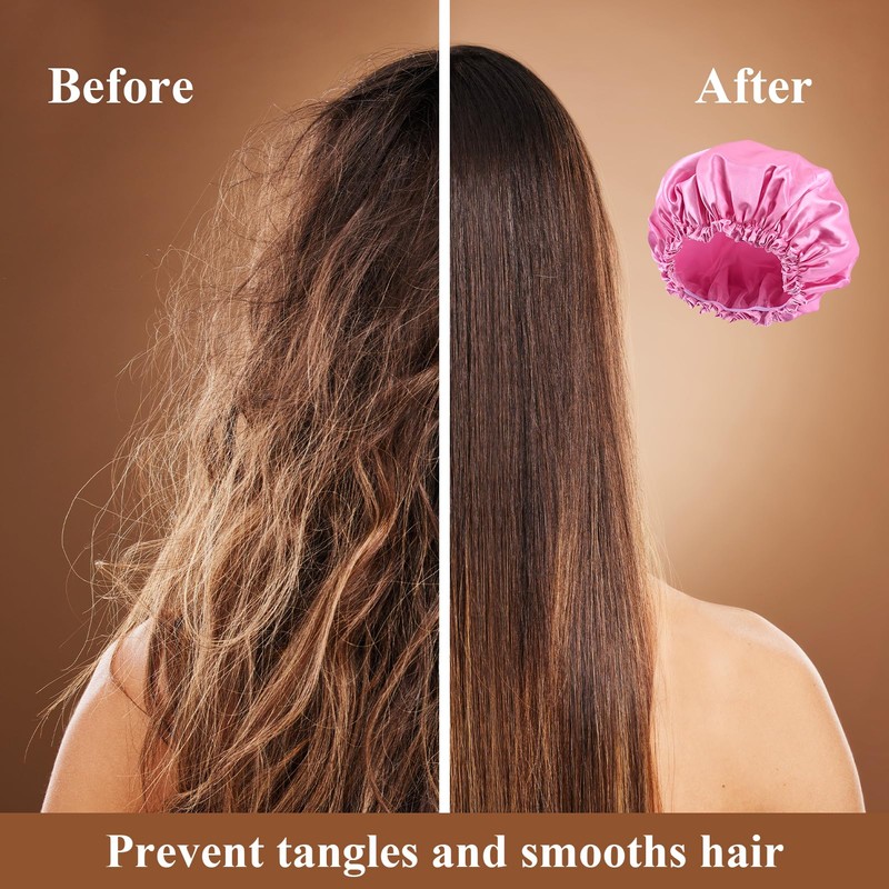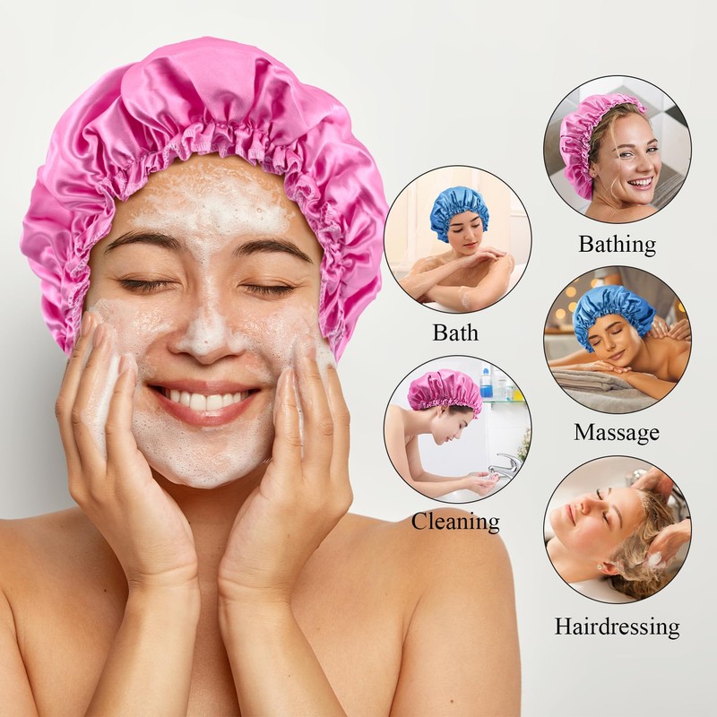 - Double Layer Protection: Our shower caps feature an outer silk layer and an inner EVA layer for maximum water resistance. The luxurious silk exterior feels soft and smooth, while the EVA material inside ensures your hair stays completely dry.