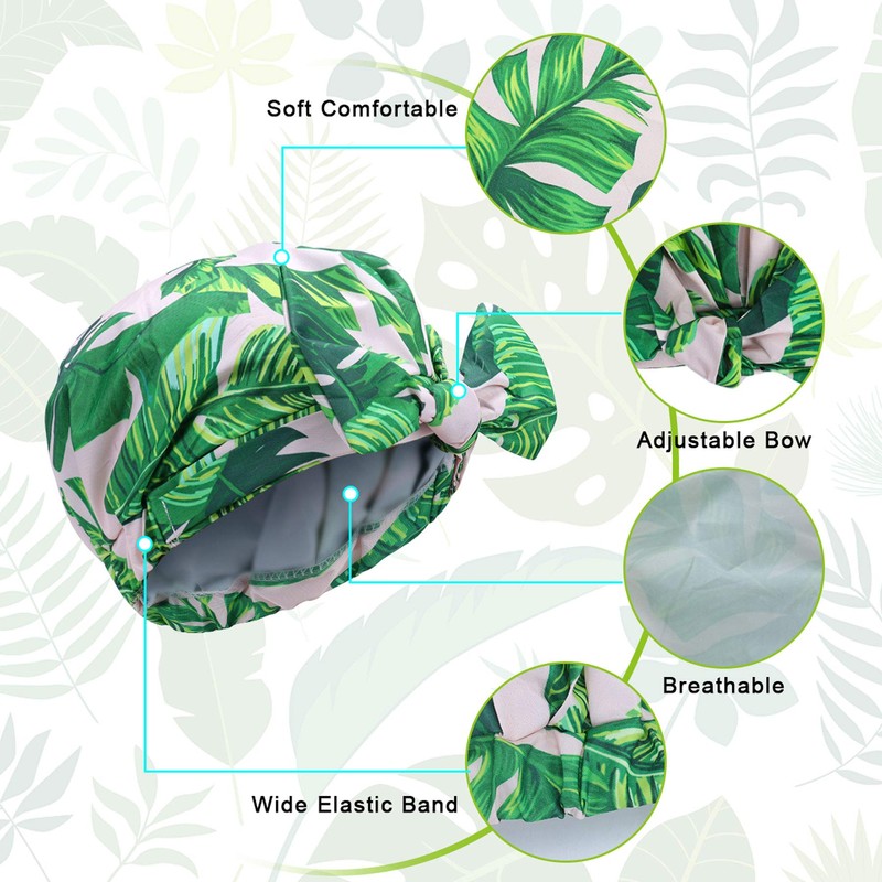 • Exquisite design: Shower cap with four different patterns: stripe; leopard; flower and palm tree, you can choose one to enjoy your bathing time
