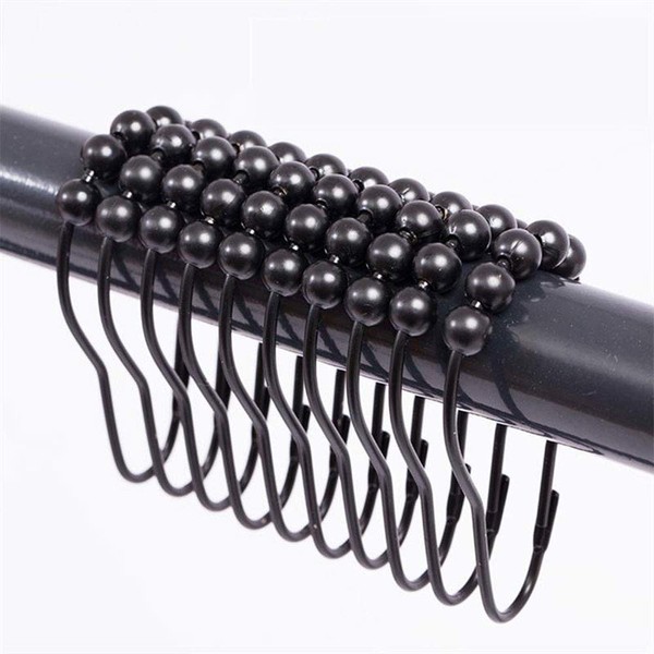 Shower Curtain Hooks Rings Metal Rust Free Polished Chrome Bathroom Curtain Hooks Set of 12(Black)