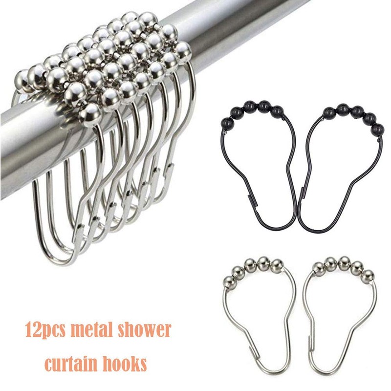 - [Other information]: Material: aluminum, Total length: 70mm Color Optional: silver,black, Package Include:12 x metal shower curtain hooks.