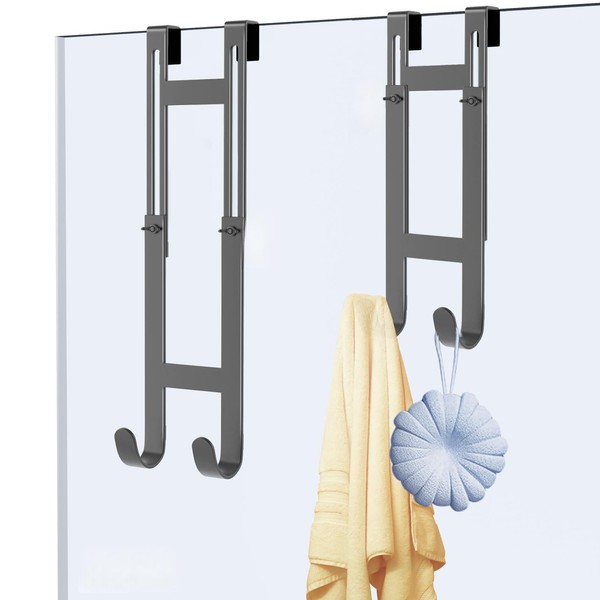 Shower Door Hooks, 7.7"-17.7" Height Adjustable Towel Hook For Frameless Glass Door, Stainless Steel No-Drill Double Bathroom Hooks, With 2 Anti-Slip Pads, Shower Hook For Robe, Bath Towel -1 Pack