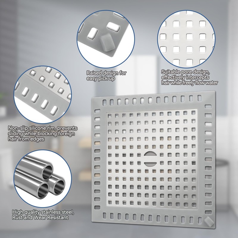 - Efficient Hair Catcher—The shower hair drain catcher adopts a proper pore design, which effectively intercepts hairs or other foreign objects while water flowing freely, so you don't need to worry about clogged drains any more
