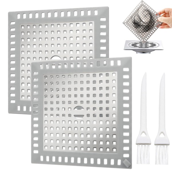 Shower Drain Hair Catcher, 2 Pcs 4.8” Square Shower Hair Drain Catcher Stainless Steel Hair Catcher Shower Drain Cover for Shower Bathtub Bathroom Floor Kitchen Sink, Bathtub Drain Hair Catcher