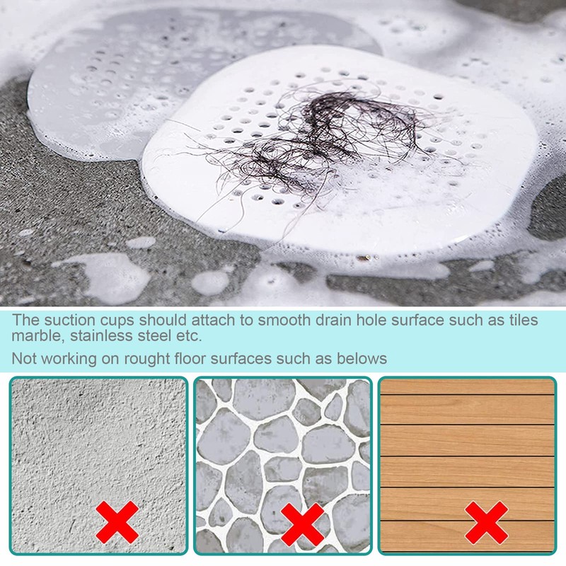 - 【Warm Tips】The suction cup of tub hair catcher request cotnact surface must be Flat and Smooth, Otherwise it can't fixed in place. Fits all showers or tubs sink drain holes less than 4x4 inches.