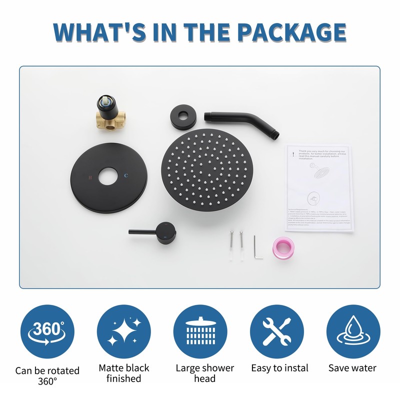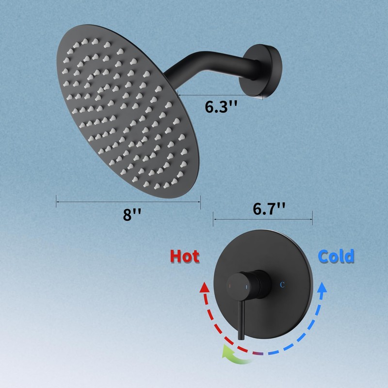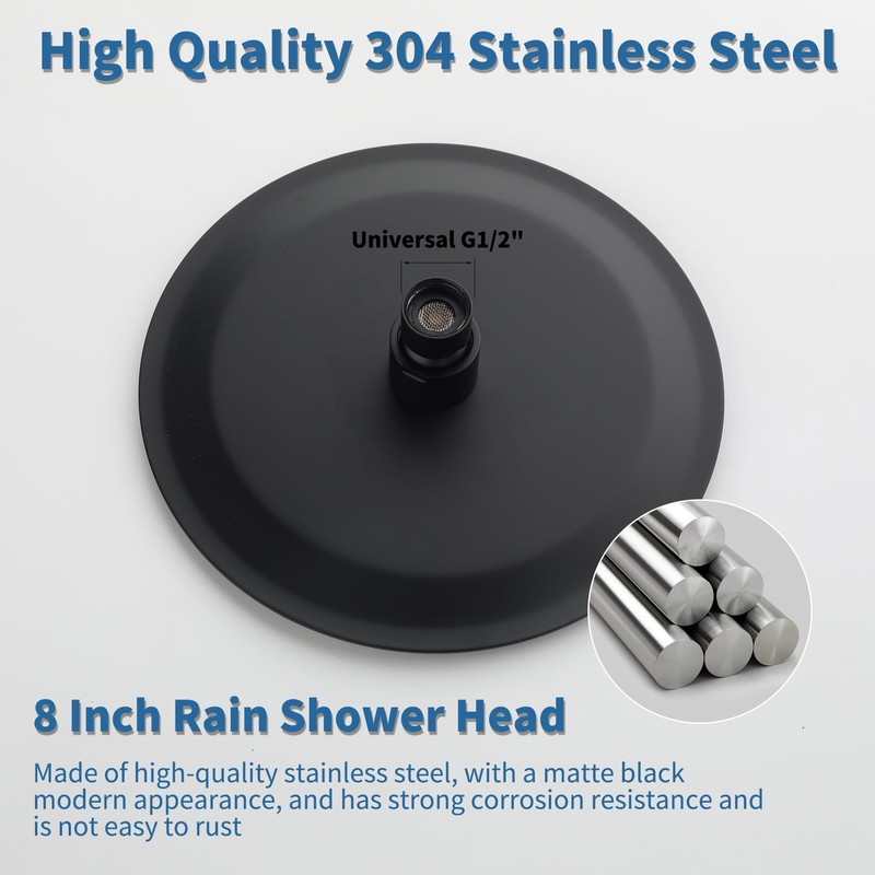 - 【High-Pressure】This single-function shower faucet features an 8-inch rain shower head. The combination of ultra-thin and air-in technology offers a strong and high pressure shower; you can enjoy a spa shower at home, even in a low-pressure area