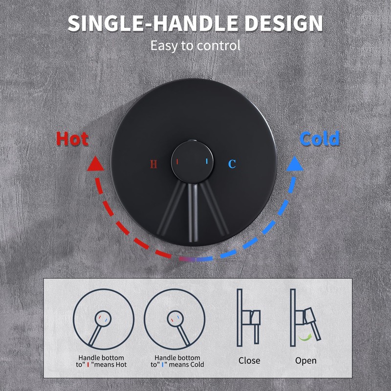 - 【Function】The black rain shower head kit has 1/2" NPT male thread shower arm. The rainfall shower head and handle set has a single handle design for effortless flow and temperature control