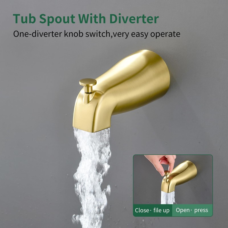 Shower Faucet Set with Tub Spout Tub and Shower Faucet Set Complete with Handheld Shower Head Shower Combo Set Shower System with Tub Spout Tub and Shower Trim Kit Brushed Gold