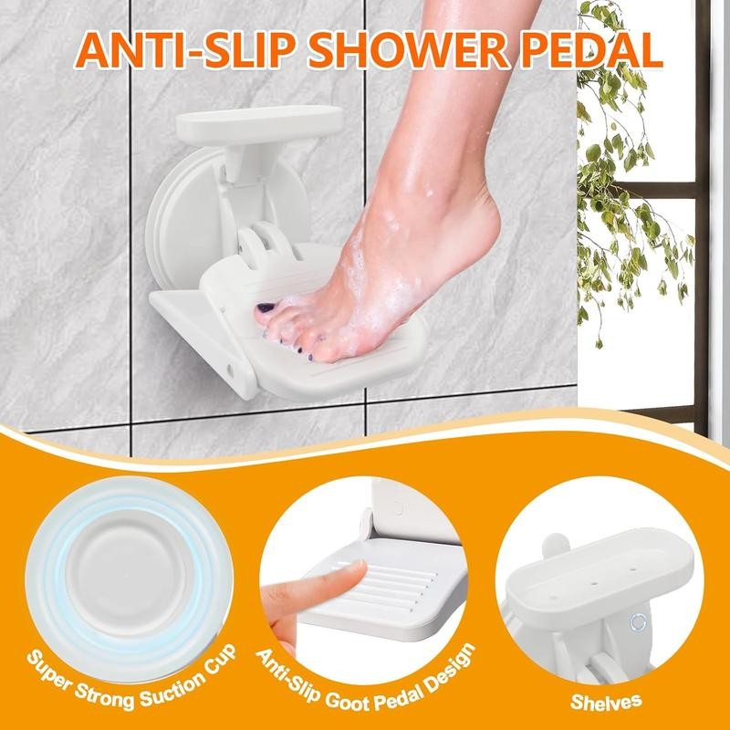 Shower Foot Rest for Shaving Legs, Foot Stand with Powerful Suction Cup, Reusable Foot Rest Shower Stool, No Drilling Non-Slip Shower Pedal with Shelves for Inside Shower