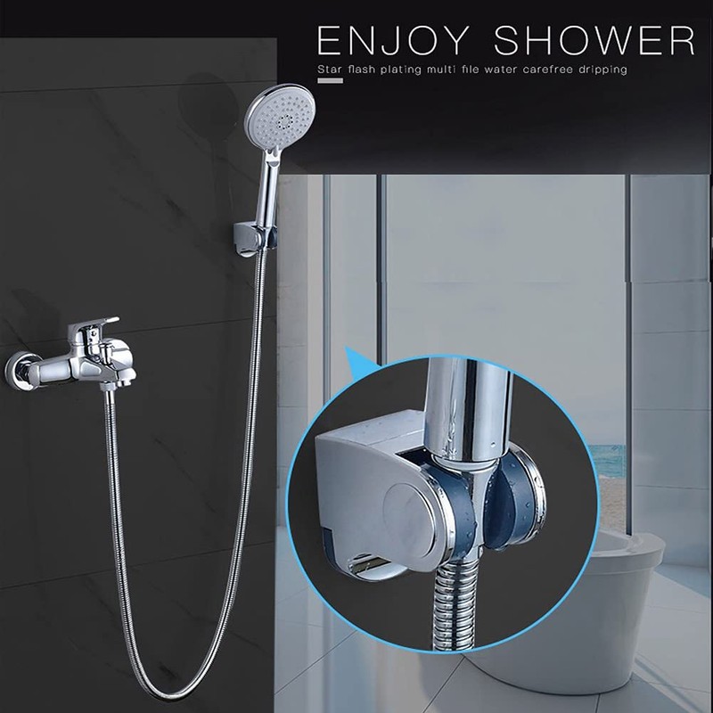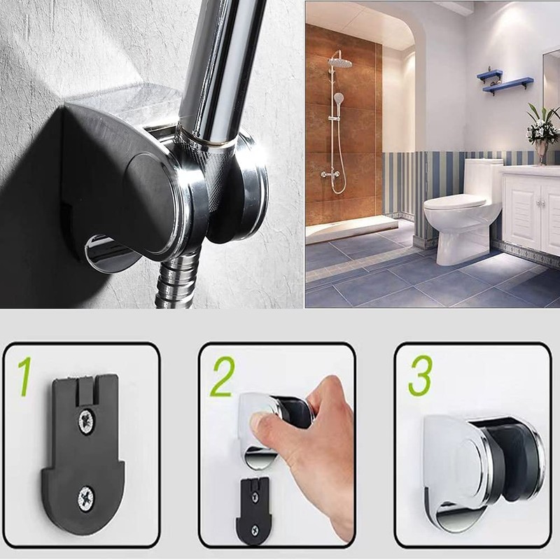 - HIGH QUALITY MATERIA: This shower head holder bracket is bulit of light weight but heavy duty engineering grade plastic. High quality, water-proof and rust-proof. With high-end electroplating process, this shower head holder wall mount is built to last, resisting coffosion and tarnish well.