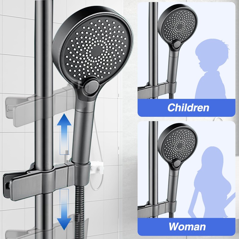- Non-slip design: the shower head holder has a built-in resin silicone ring that not only increases the binding strength on the shower rod, but also protects the shower rail from everyday scratches and prevents slipping.
