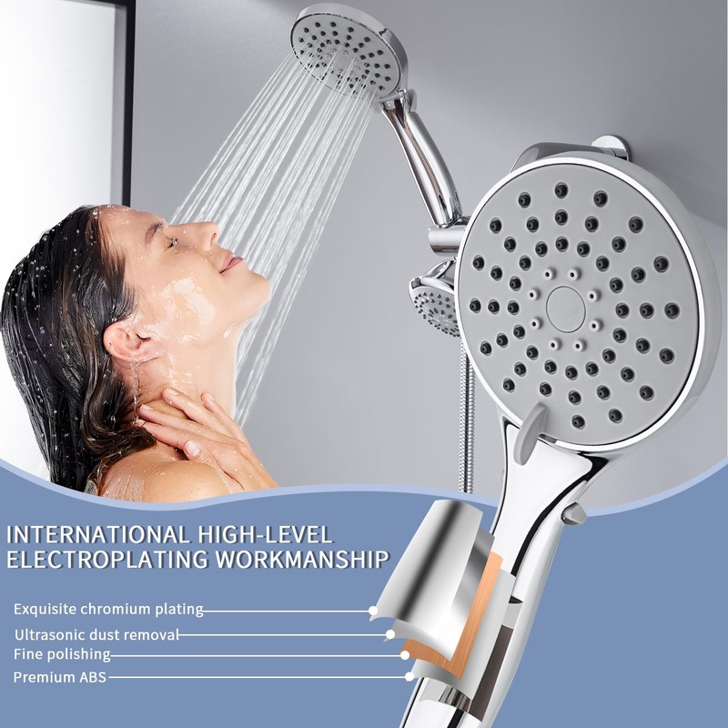 - 【HIGH QUALITY MATERIALS】Made of premium ABS with advanced chrome plating, the showerhead is lightweight, durable, and safe for long-lasting use.