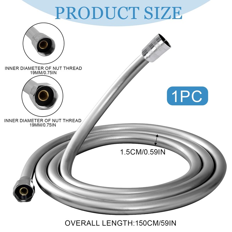 Shower Hose 1.5 m Silver PVC Universal Shower Hose PVC Smooth Shower Hose Plastic Shower Hose Plastic Shower Hose Shower Hose with Universal Connection for All Shower Heads