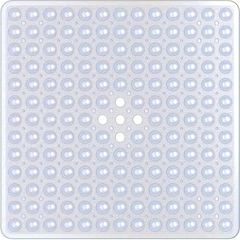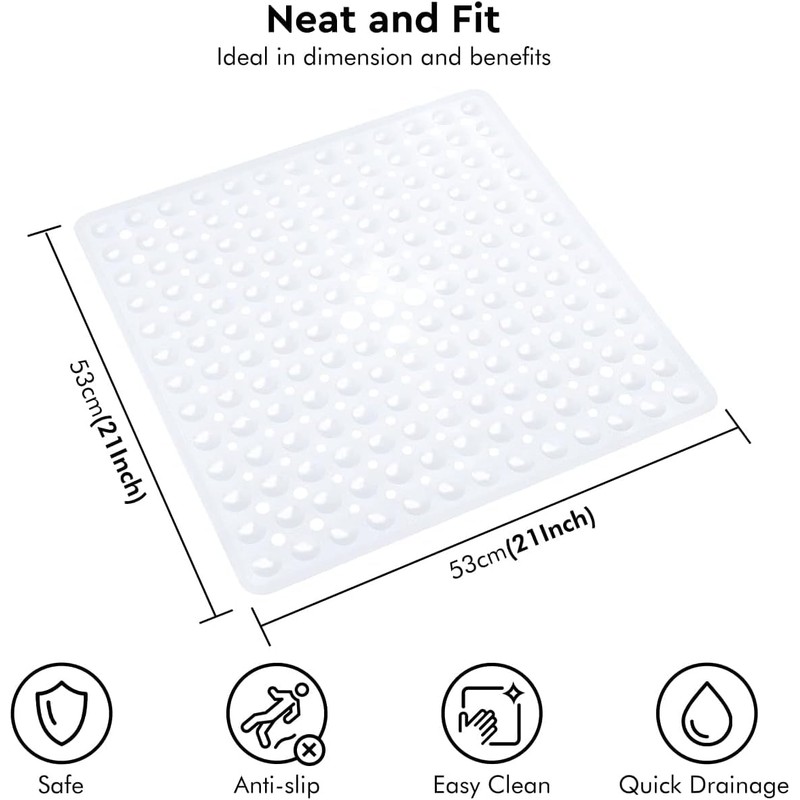 Shower Mat Non Slip Anti Mould, 53x53cm Square Shower Mats for Inside Shower, Anti-Slip Bath Mat with Strong Suction Cup, Drain Holes, Machine Washable, Ideal for the Elderly and Children (Clear)