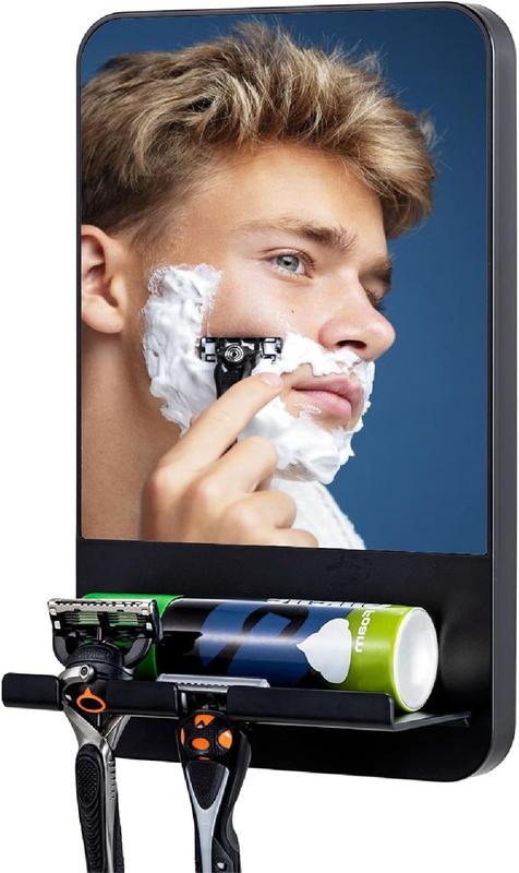 Shower Mirror Fogless for Shaving with Razor Holder, Suction Fogless Mirror for Shower Anti Fog Shaving Mirror for Bathroom Fog Free No Drilling for Man & Woman Shatterproof Removable, Black - Color: black