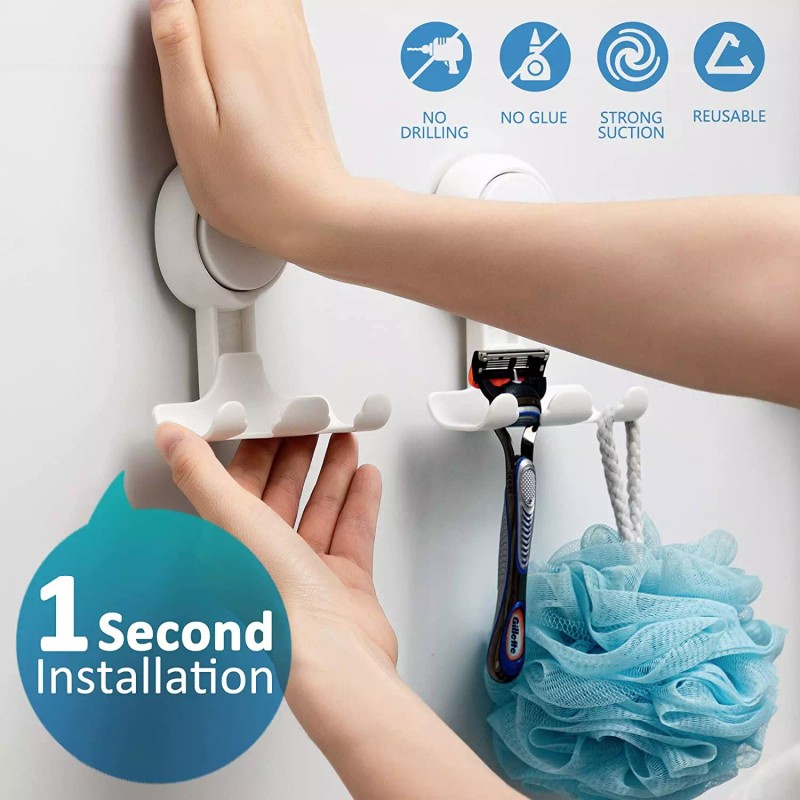 - 【OPTIMUM IN MULTIPLE SCENES】- You can hang more than just razors, but also towel, loofah, sponge, bathrobe on the suction shower hooks. The suction cup holder can be installed in the kitchen, bathroom, living room, wherever you need. WARM TIPS: The suction cups are only stick on smooth, non-porous AIRTIGHT surfaces like metal, glass, tile, stainless steel but not apply to uneven tiles, unfinished marble, wallpaper, painted wall, etc. Great gift for home decor! Bathroom accessories for shower!