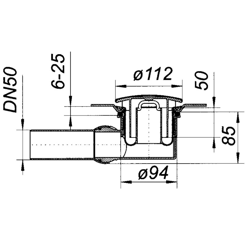 - With side drain pipe DN 50, with ball joint adjustable from 0 - 15 degrees