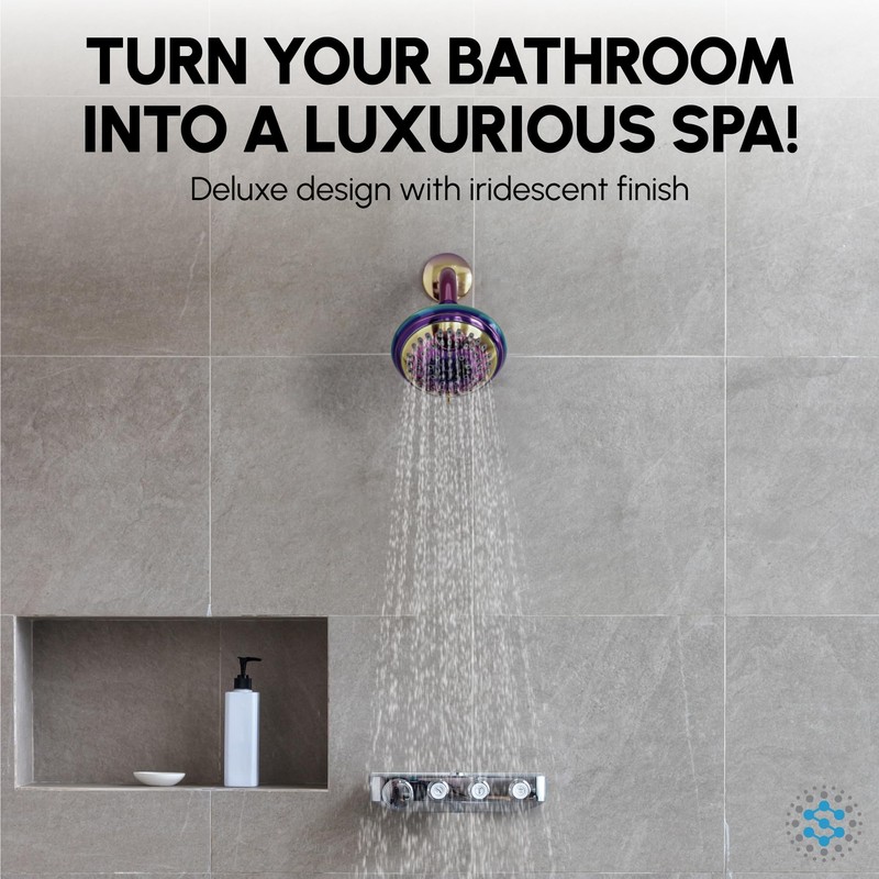 ShowerMaxx Luxury Spa Series Shower Head, 6 Spray Setting, 4.5 Inch Adjustable High Pressure Shower Head Fixture for Hard Water, 360-Degree Tilt Massage Shower System - Rainbow Finish Shower Head