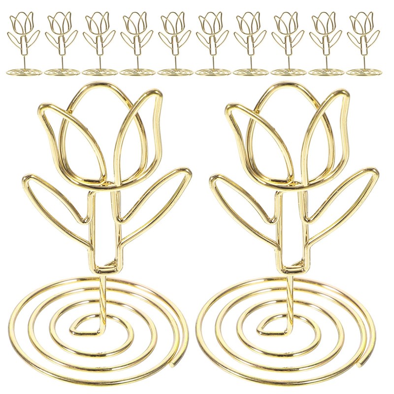 SHOWERORO 10pcs Tulip Note Holder Metal Place Card Holder Mini Photo Holder Flower Pick Clips Xmas Place Card Stand Wire Menu Memo Clips Table Picture Stands Iron Vertical Banquet