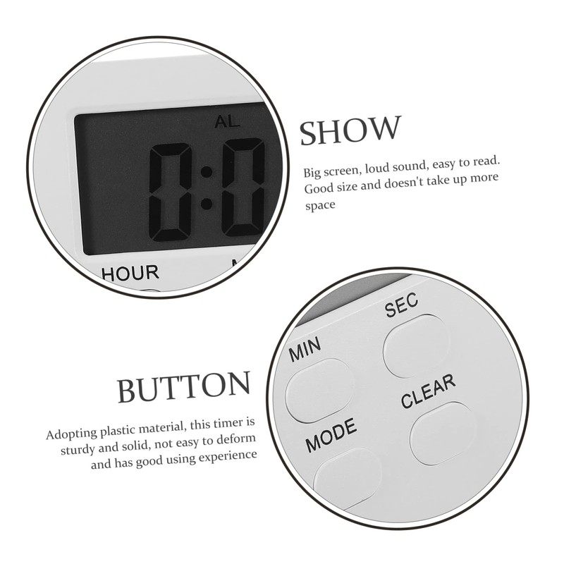kitchen timer digital Small size designed makes it easy to hold and move, suitable for home, kitchen, cooking, study, classroom, teachers, .kitchen timer Adopting plastic material, this timer is sturdy and solid, not easy to deform and has