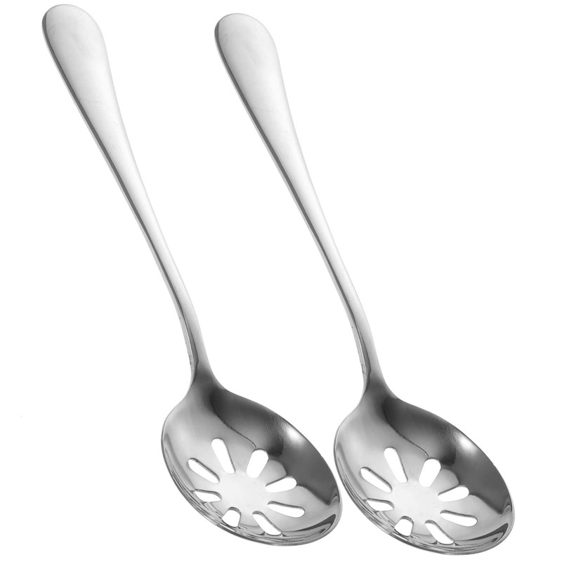 SHOWERORO 2sets Silverware Spoons Cozy Cooking Utensils Daily Use Serving Spoons Portable Slotted for Dinner Wedding Party 2pcs*2