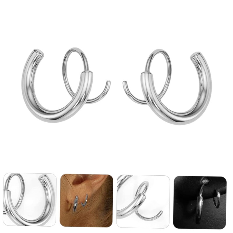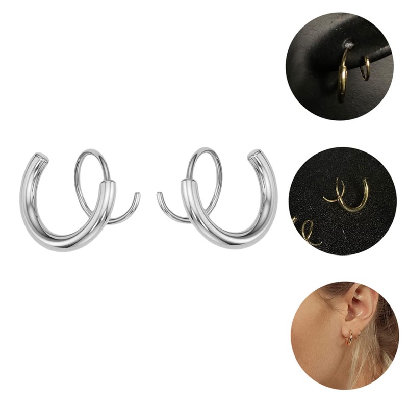 SHOWERORO Minimalist Silver Helix Earrings Titanium Earring Set for Women Stylish Twist