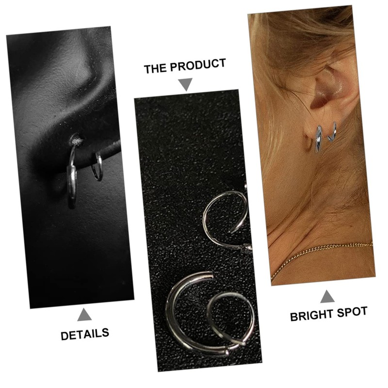 SHOWERORO Minimalist Silver Helix Earrings Titanium Earring Set for Women Sty...
