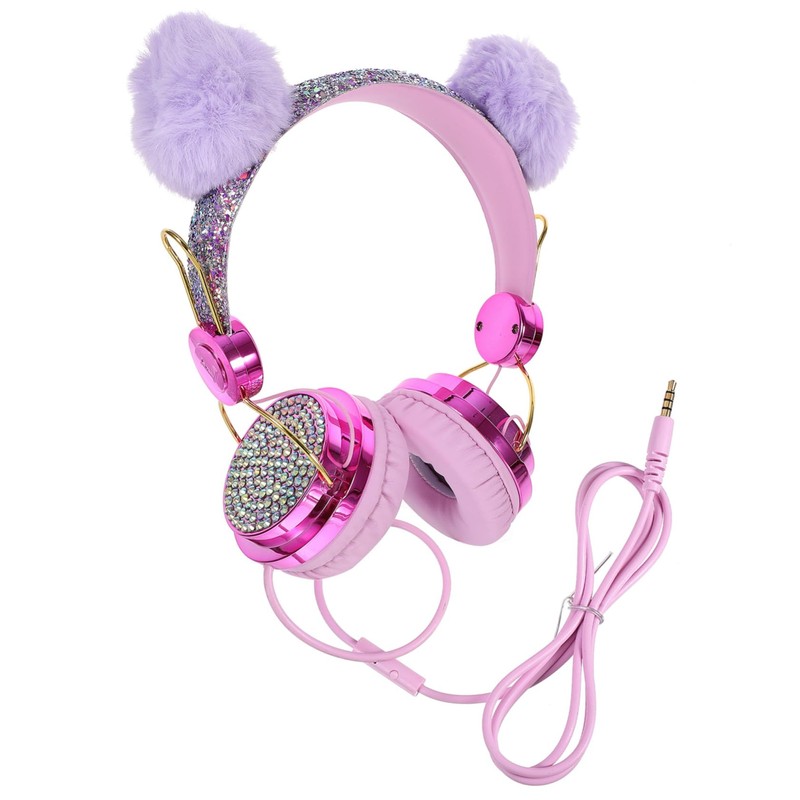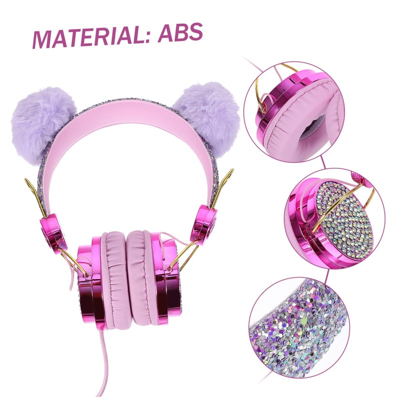 - wired headphones:with lovely trendy and pompom ear design, and cushioned ear pads headband, this headphone is perfect for ,childrens headphones