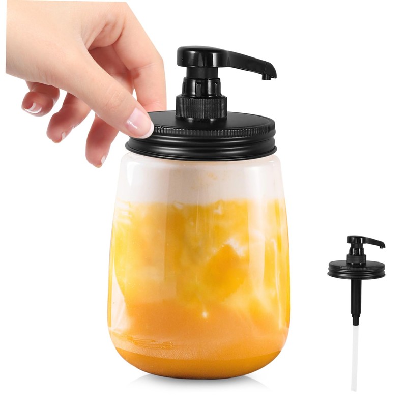 - Designed to fit on jars, making dispensing of jams, syrups, honey, and other condiments easy and convenient canning jar pump.