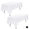 - đ·ăPackage IncludedăThe package will include 2 piece rectangle white premium 100% polyester tablecloth,which is easier to clean and durable than most cotton.This polyester fabric is wear-resisting, no pilling, with anti-pollution function.Hold shape and color well after repeated use and washing.This polyester fabric table cloth feels very comfortable, wonât slide, giving a good sense of experience,and protect your tables and furniture from scratches, stains and sun rays.