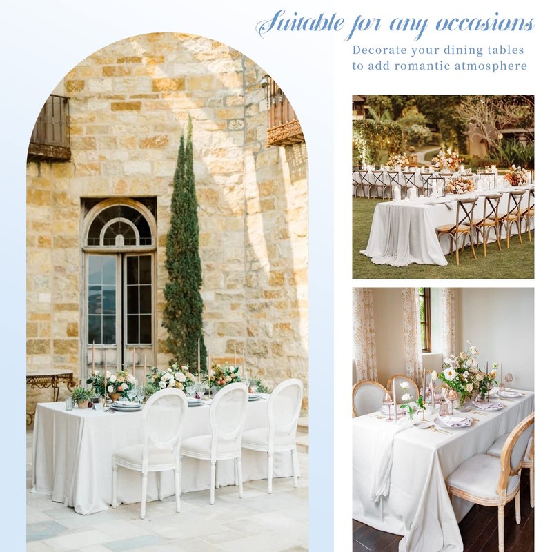 • đŸ·ă€Decorative Tablecloth for Rectangle Tables】This 180gsm polyester white tablecloth for rectangle tables perfect for dining table, tea table, indoor, outdoor and everyday use.Great choice for Weddings, Birthday Party, Baby Shower, Food Buffet, Banquet, Thanksgiving and Christmas Dinner.Perhaps your table is very common, decorate your table with Showgeous tablecloths to provide you with a more elegant dining environment.