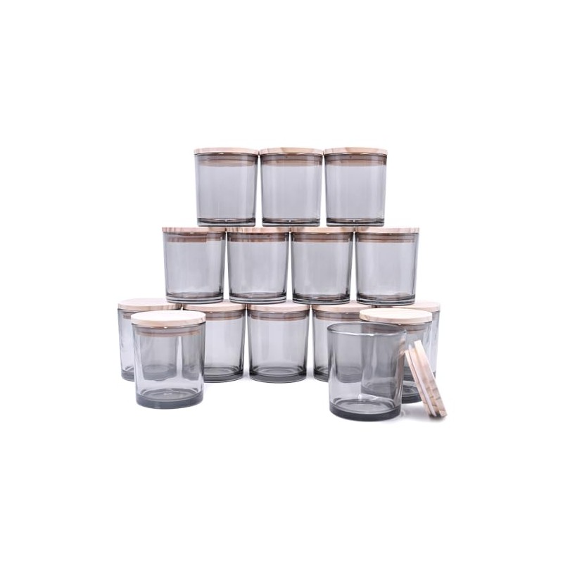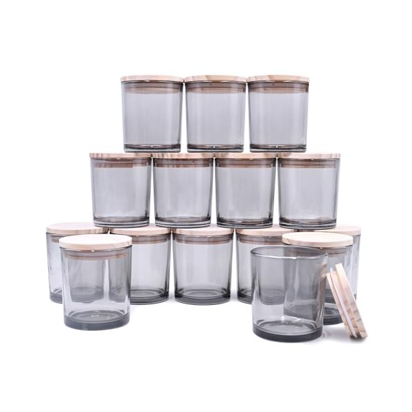 SHOWIN 8 OZ Thick Candle Jars for Making Candles 15 Pcs, Gray Empty Jars with Wood Lids for Candle Making, Sample Container,Clear Gray