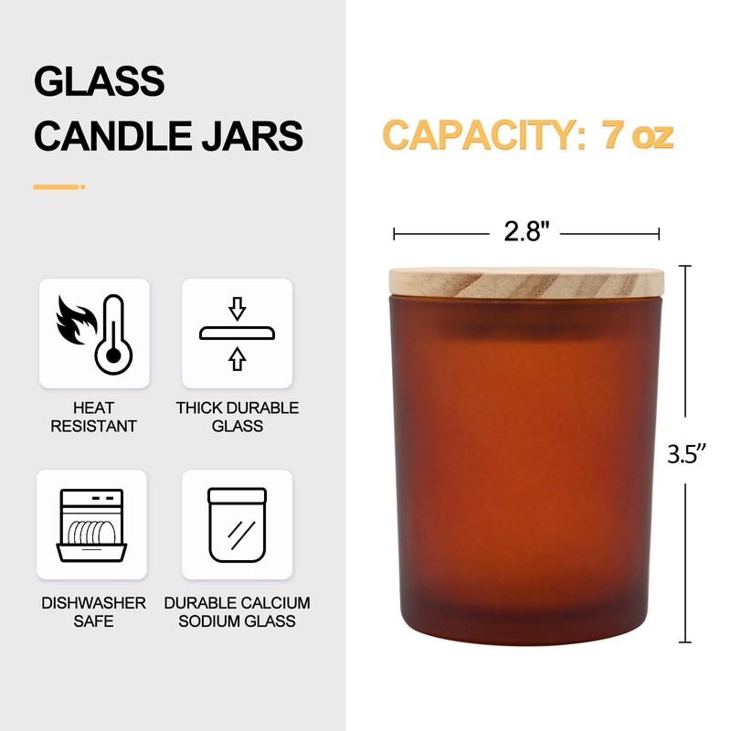 - [Glass Candle Vessel] A perfect fall candle jars for making candles. Designed with wood lid and glass , stylish appearance, simple and modern, can be used as elegant home decoration, candlelight through the amber candle jars, create a warm family atmosphere.