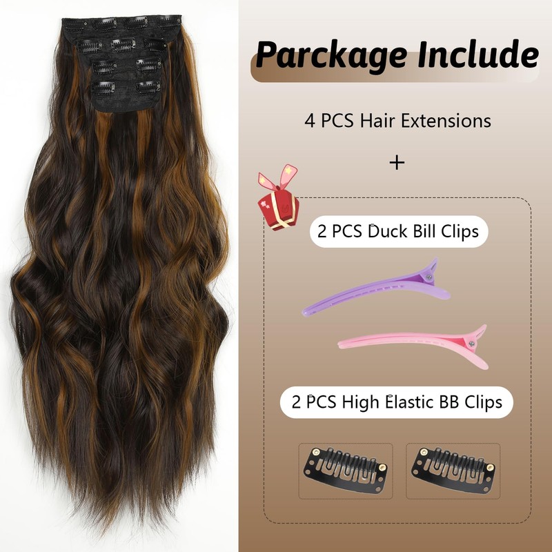ShowJarlly Clip-In Extensions, 4 Pieces, 60 cm Full Head Hair Extensions with Clips, Synthetic Wavy Hair Extensions, Clip-In Hairpiece for Women