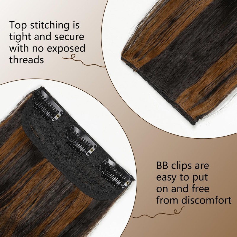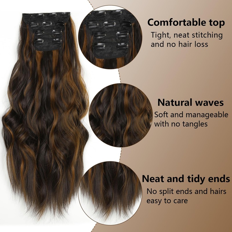 - Advantages of clip-in extensions: Compared to conventional hair extensions, you can achieve more volume with clip-in extensions without glue, without tape, no damage to hair and scalp and with less effort. You don't need to rush to the hairdresser when you are at a party or get distracted in the morning. You only need 5 minutes to wear these wigs, and you have a glamorous and elegant look.