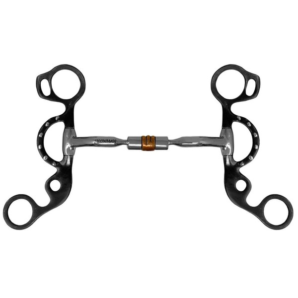 Showman Comfort Jointed Copper Roller Short Shank Snaffle Bit. The short shank design of this snaffle bit provides a mild leverage effect, which can be beneficial for horses that need a bit more control or guidance. This bit features a jointed ergonomic forward mouthpiece that allows for a more natural movement of the horse's mouth, reducing any discomfort or resistance. Additionally, the copper roller in the center provides a sweet taste that encourages the horse to salivate, promoting relaxation and acceptance of the bit. Experience the craftsmanship of a handcrafted Showman bit - each component is expertly welded, formed and ground by hand.