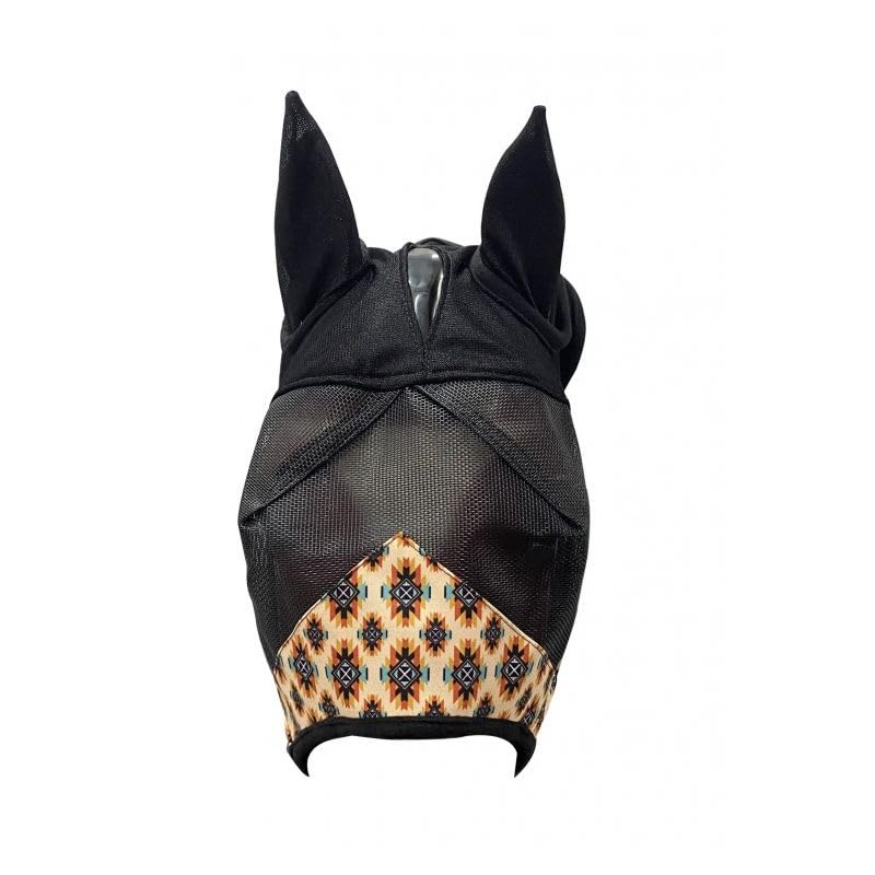 Showman Cream, Yellow & Blue Aztec Print Fly Mask w/Ears (Large)