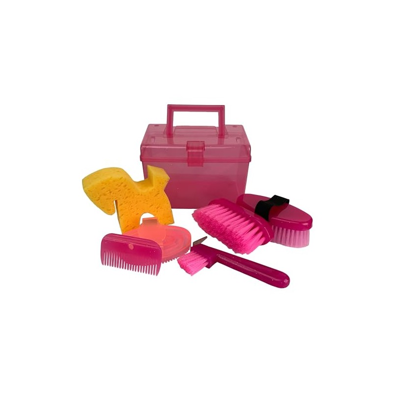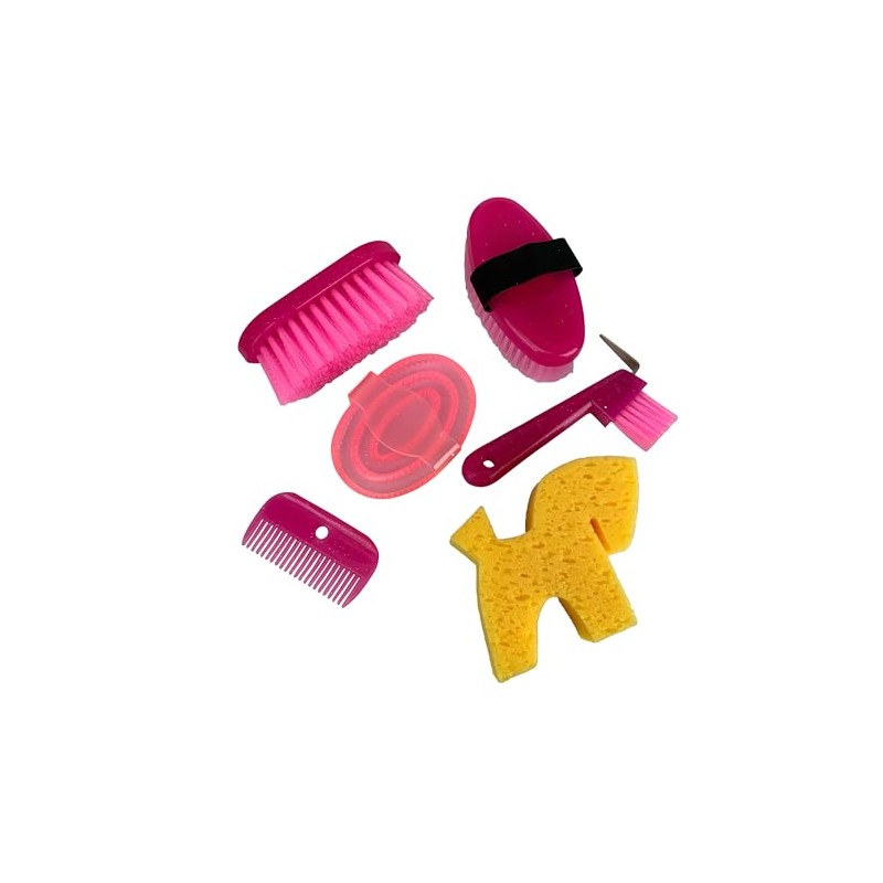 - (2) Body Brushes, (1) Rubber Curry Comb, (1) Hoof Pick, (1) Mane Comb & (1) Horse Shaped Sponge