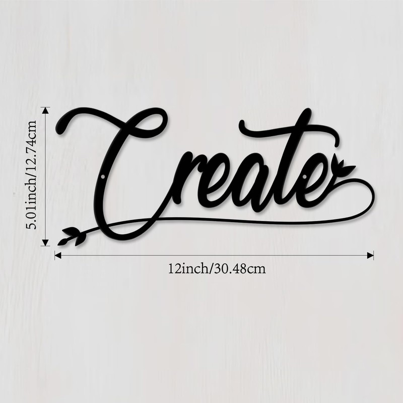 These signs are crafted from premium metal and laser cut with precision before being powder-coated for added sturdiness. They boast exceptional rust resistance, ensuring they endure environmental wear and remain vivid for years to come. The designs are a perfect fit for both contemporary and classic farmhouse home styles, featuring inspiring phrases, fun quotes, and scenic images.Our metal signs can be easily installed with pre-drilled holes and matching screws, and can be attached directly to the wall or hung in any desired location. Whether you're searching for a considerate present for a housewarming or party, or want to add character to your living space, this metal "create" sign is an excellent option!