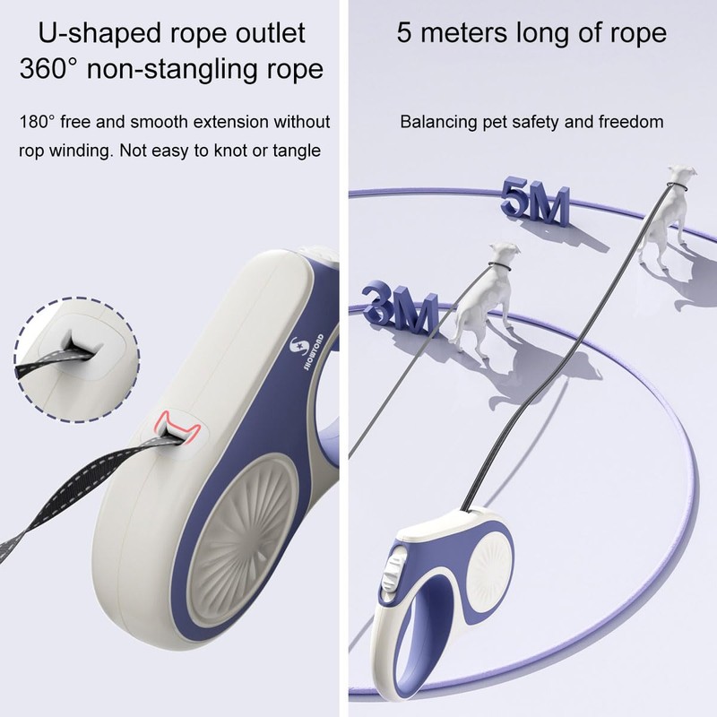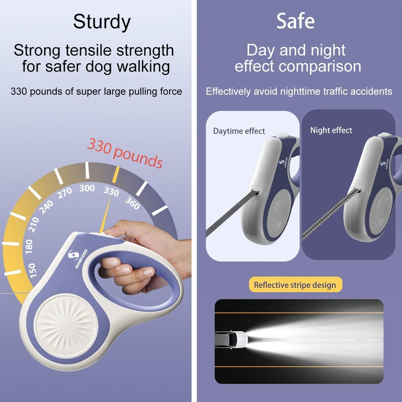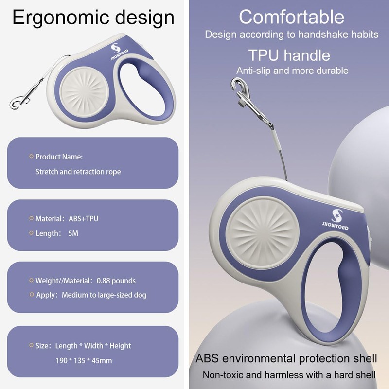 Showyond Retractable Dog Lead 5 m, Prevent Sudden Rush Out, Extendable Leash No-Tangle Heavy Duty Dogs Nylon Tape, Suitable for Small and Medium Dogs Up to 30 kg, Blue