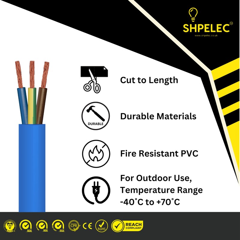 SHPELEC® Arctic Grade Blue Flex Cable - 3183A 1.5mm² and 2.5mm² - Heavy-Duty Electrical Wire for Harsh Environments (2.5mm, 5m)