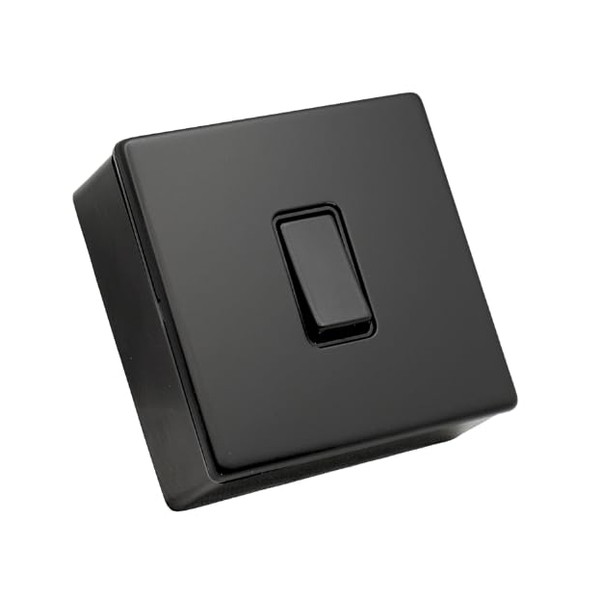 SHPELEC® Matt Black Metal Switch and Socket Range with Surface Mount Back Box – Sleek, Durable, and Easy to Install (1 Gang 10A Switch + Back Box, Screwless)