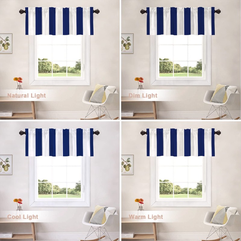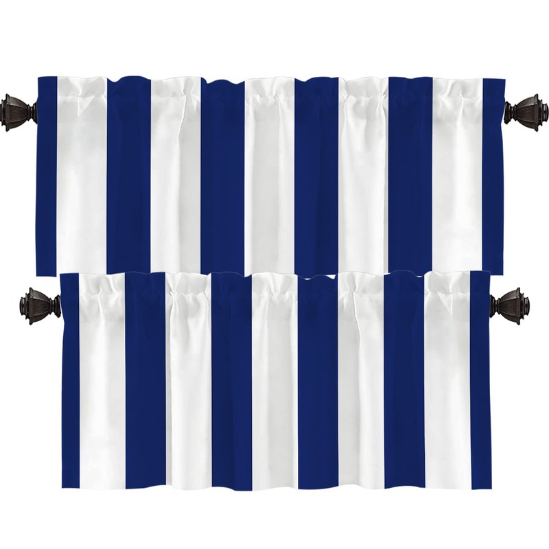 Shrahala Blue Classic Stripe Kitchen Valances, White Half Window Curtain Window Treatment Multilayer Polyester Blackout for Living Room Bathroom 2 Pack 52 x 16 in(Blue)