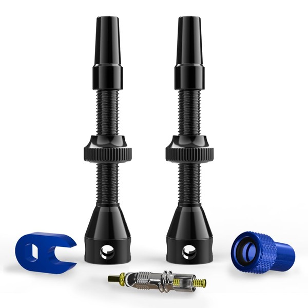 Shredr. Tubeless Valve Set | Presta Valves for Tubeless Tyres | Super Light Aluminium Colourful Anodised French Valve | Includes Valve Adapter, Replacement Valve and Tool (Black, 44 mm)