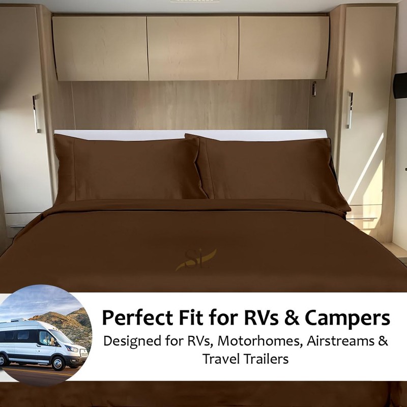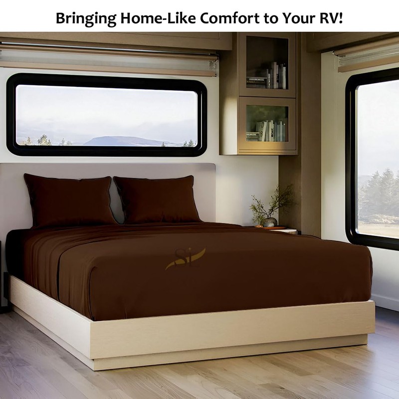 Shreem Linen Microfiber RV Sheet Sets, 60x80 Camper Queen, Chocolate Solid - Fits Mattresses up to 8 Inches Deep, 4 Piece RV Bed Sheets for Campers, Motorhomes, and Travel Trailers