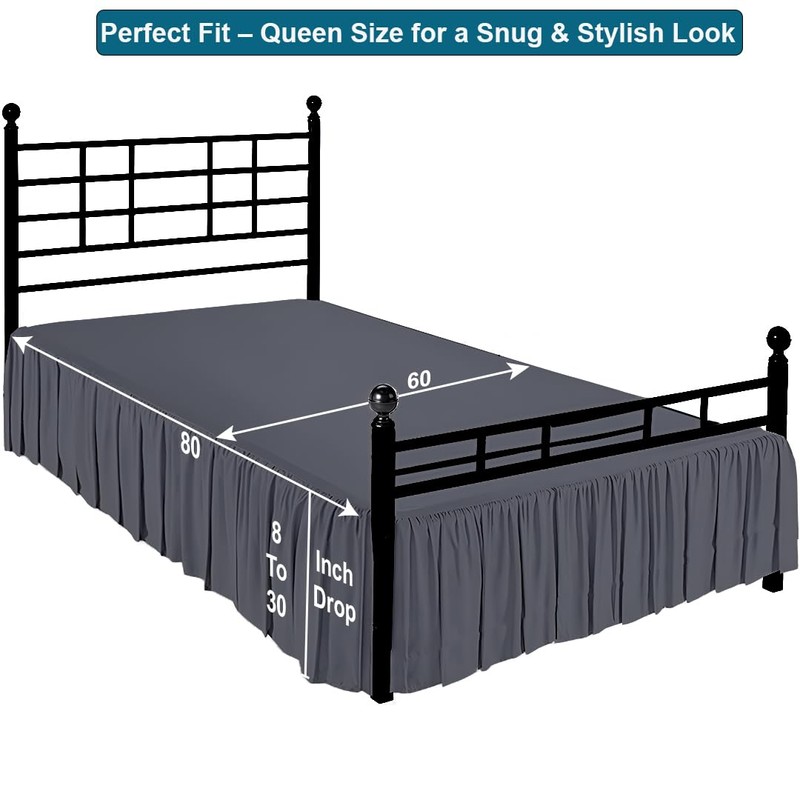 - Perfect Fit Queen Size: Ruffled bed skirts are suitable for Queen beds measuring 60" W x 80" L and fit up to an and fit up to an 18 Inch drop, ensuring everything under your bed stays hidden.
