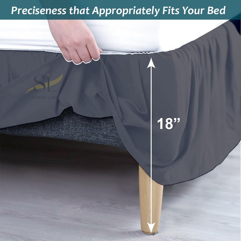 Shreem Linen Ruffled Bed Skirt with Split Corners, Gathered Style, 100% Microfiber, 18-Inch Drop, Dust Ruffle Bedskirt with Platform, Queen, Dark Grey
