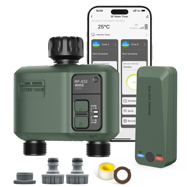 - EASY INSTALLATION & MULTI ZONE CONTROL User-friendly app guide, plug and play RF433 controlled valves or sensors without complex wiring and management of multiple devices via RF433, ideal for large garden irrigation.
