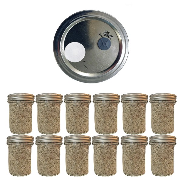 Shroomability Brand Organic Brown Rice Flour Mushroom Substrate 1/2 Pint Jars (12 Ct)