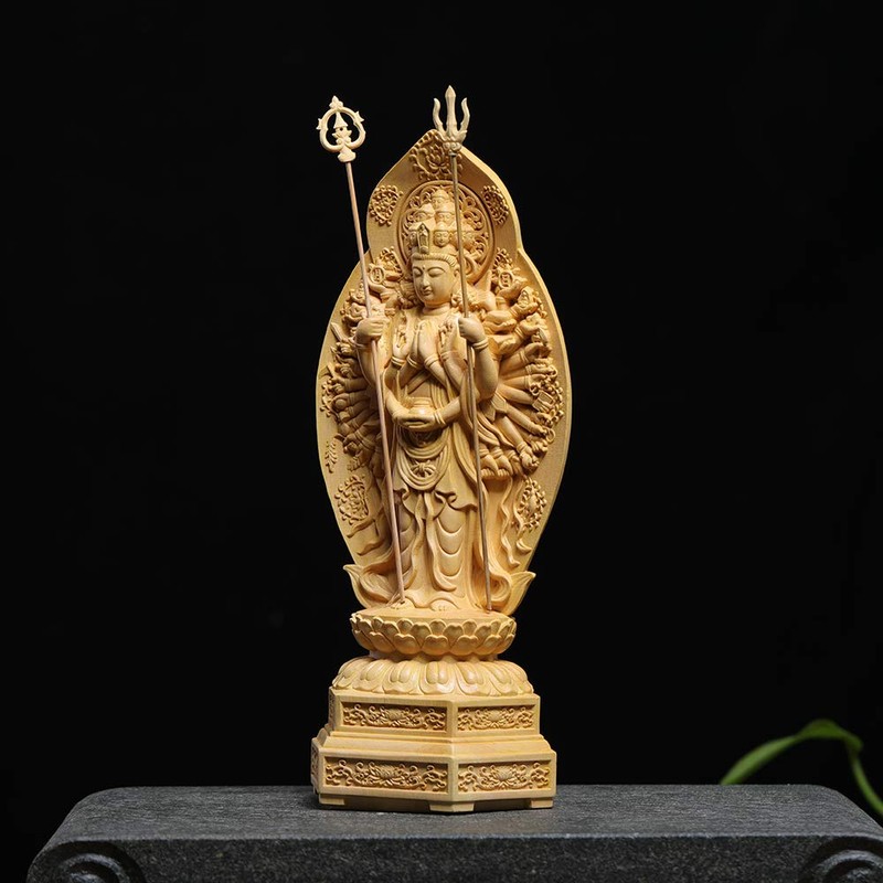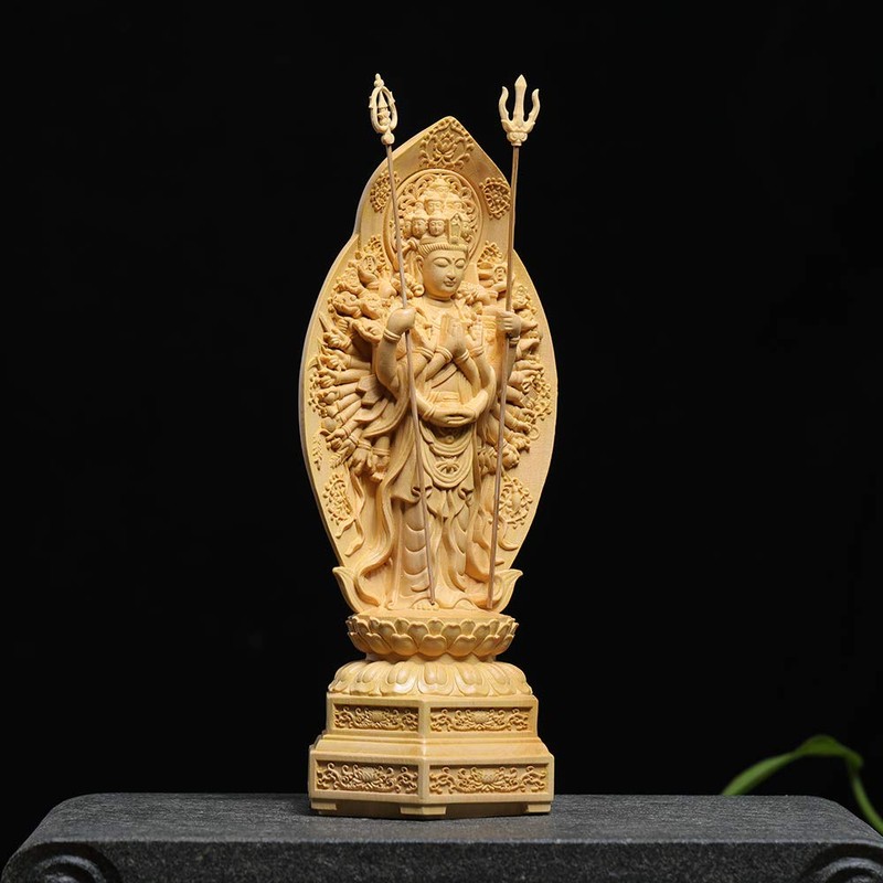 Shrouou Sculpture Buddha Statue Thousand Armed Kannon Buddha Statues, Made of Tsugi, Wood Carved, Figurine, Exclusive Thousand Hands Phosphorus, Child Year Protector, Prayer, Evil Protection (Height 7.9 x Width 3.1 x Depth 2.6 inches (20 x 8 x 6.5 cm)